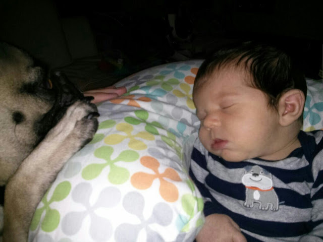 Our baby bro even got a pug themed sippy cup and plate plus a bib. So thoughtful. Mom found the place mat to match.